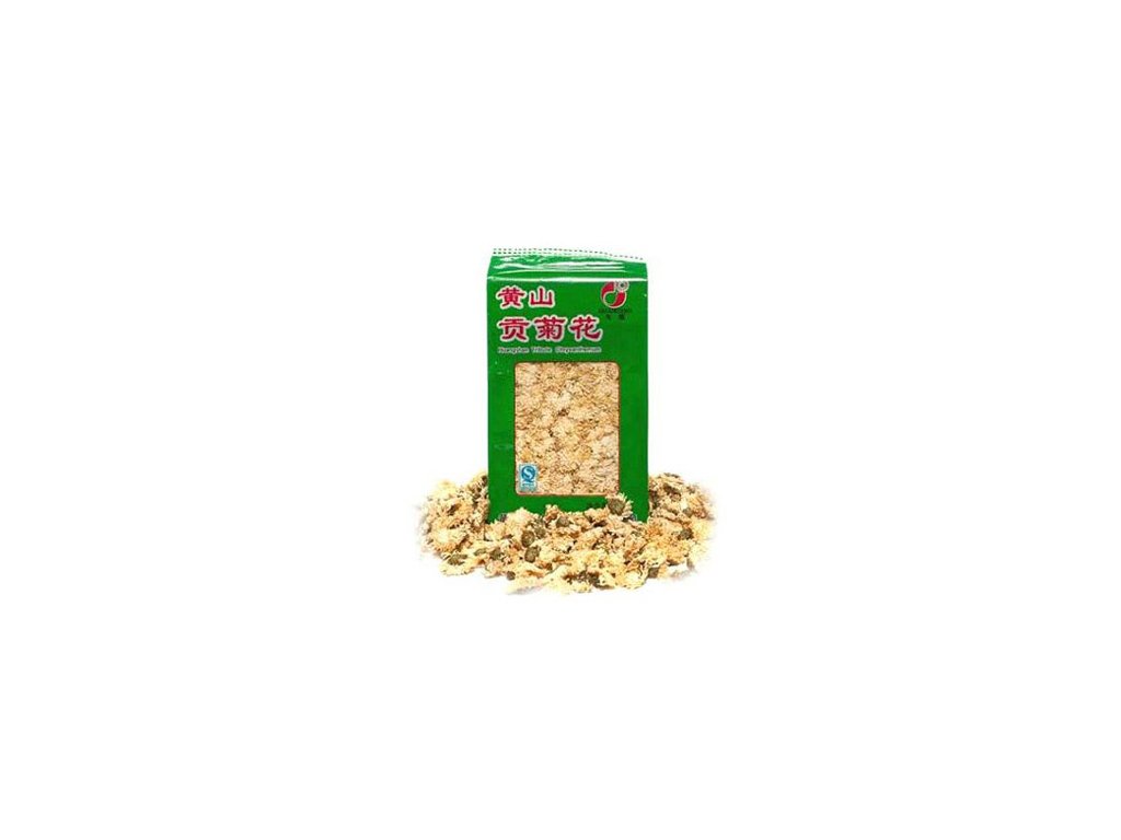 Osvěžující nápoj z květů bílé chryzantémy. Chryzantémový čaj se těší v Číně velké popularitě. Doporučuje se pít v průhledné sklenici. Pohled na rozvinuté chryzantémové květy v nálevu působí harmonizačně.