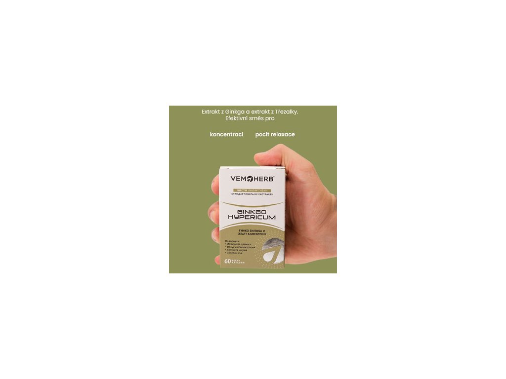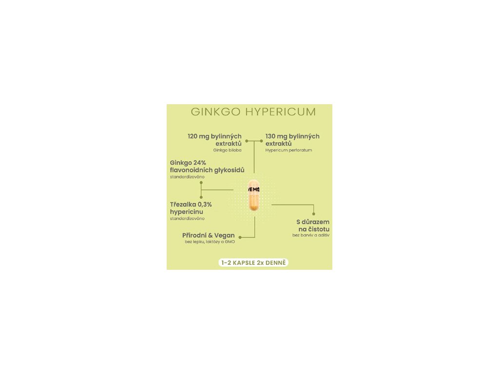 Složení v 1 veganské kapsli: suchý extrakt z listů Ginkgo biloba, suchý extrakt z nadzemní části Hypericum perforatum, obal kapsle (hydroxypropylmethylcelulóza), hrachový protein.