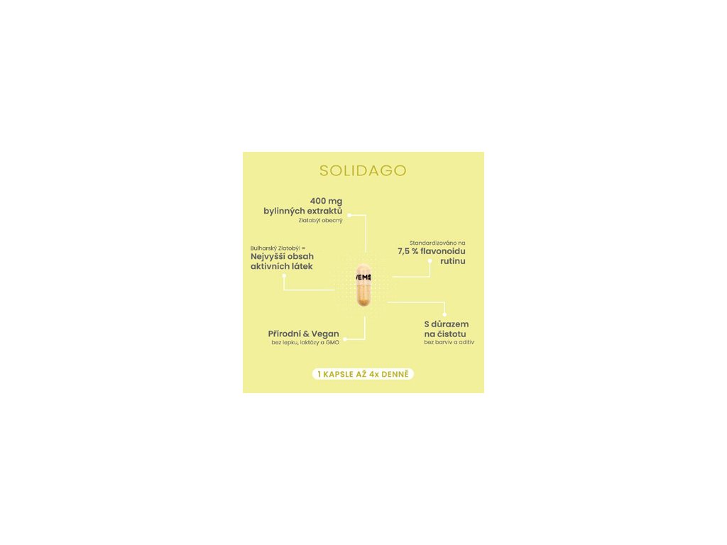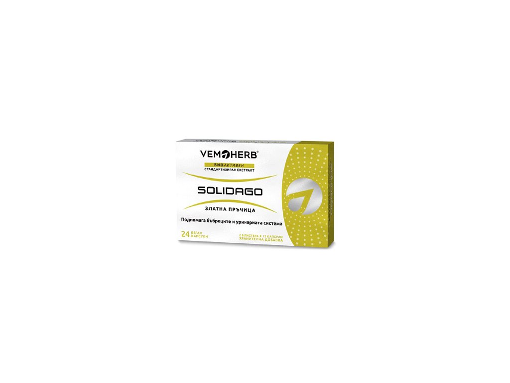 Vemoherb Solidago v novém praktickém balení v blistrech. Doplněk obsahuje suchý standardizovaný extrakt z nadzemní části rostliny Solidago vigaurea (Zlatobýl obecný). 1 kapsle obsahuje 400 mg extraktu standardizovaného na obsah 7,5 % flavonoidu rutinu. Extrakt ze Zlatobýlu obsahuje velmi široké spektrum biologicky aktivních substancí – flavonoidy rutin, quercetin a kempferol, glykosidy astragalin a rutosid, saponiny, fenolické sloučeniny, esenciální oleje, terpeny, antokyanidiny a další. Tyto látky vytváří velmi účinnou synergní směs zaměřenou na podporu ledvin, močového ústrojí, odvedení nadbytečné vody z těla a dalších oblasti.