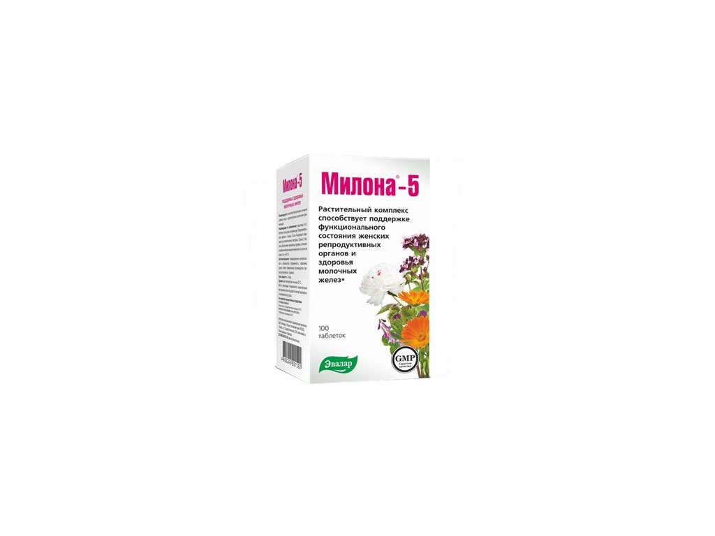 Přípravek Milona 5 je určen pro ochranu a harmonizaci ženských orgánů. Kopyšník a pivoňka pomáhají udržovat zdravé ženské orgány a hormonální rovnováhu, usnadňují průběh menoupauzy. Dobromysl příznivě ovlivňuje ženské zdraví, zejména normální stav a funkci prsních žláz. Rezavec (čaga) se používá pro posílení celkové harmonizace organismu a optimalizace metabolismu, jako adaptogen a k posílení obranyschopnosti. Měsíček a lékořice posilují zdraví, pomáhají v těle eliminovat změny související s věkem. Lopuch podporuje čištění krve, posiluje odolnost a přirozenou obranu těla, mořská řasa Laminaria je velmi vhodná k doplnění jódu a dalších minerálních látek i vlákniny do organismu.