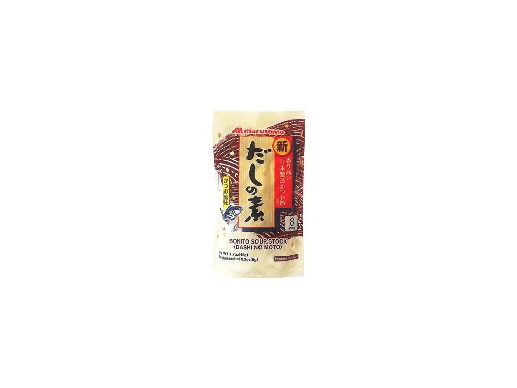 Marutomo Bonito Dashi polévkový vývar se vyznačuje bohatou aromou vloček bonito a bohatou chutí vloček Soda bonito. Používají se přísady bez alergenů. Má snadno použitelný typ balení. Kombinace vloček bonito a vloček Soda bonito v dokonalém poměru dodá plnou chutí Soda Gatsume.
