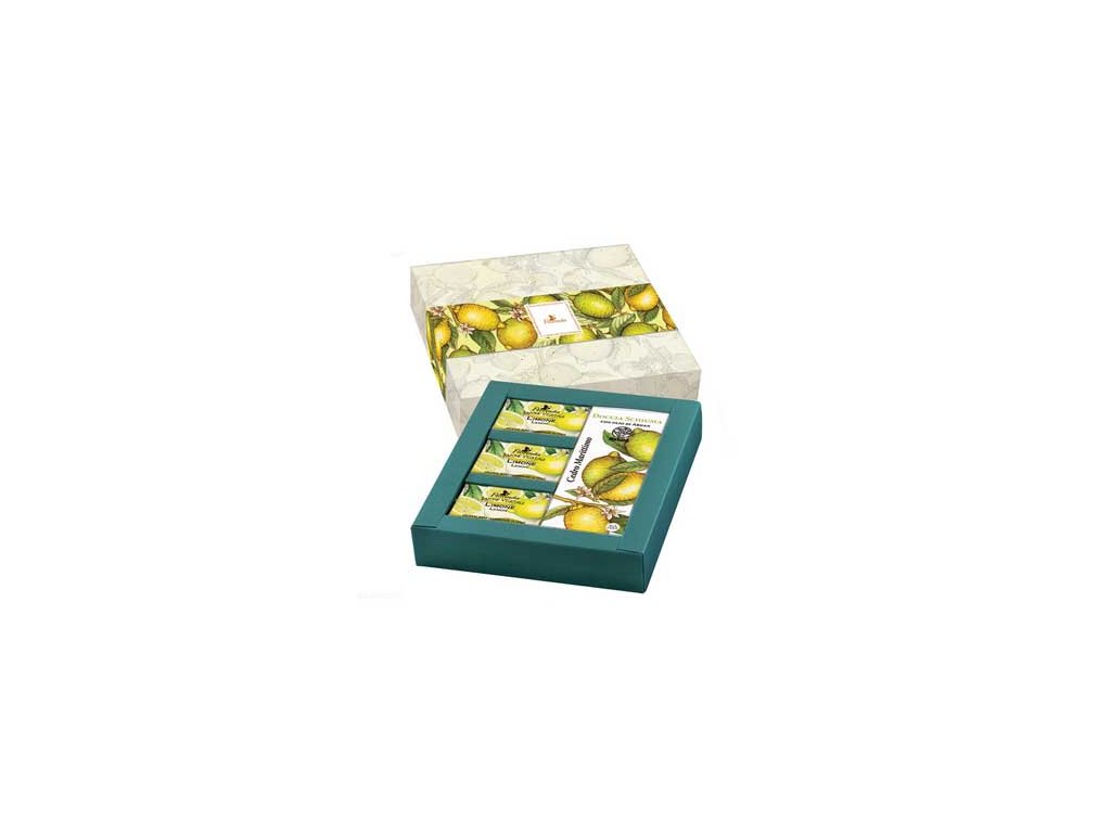 Dárkový set obsahuje Sprchovou pěnu - Citrusy a Skořice s arganovým olejem 200ml a 3x rostlinné mýdlo Toskánský citron 50g.