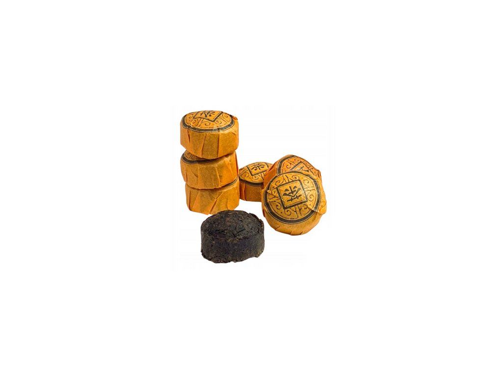 Osah: 12 kůsů mini Pchu-er Yunnan Tuocha mini s příchutí pomeranče.