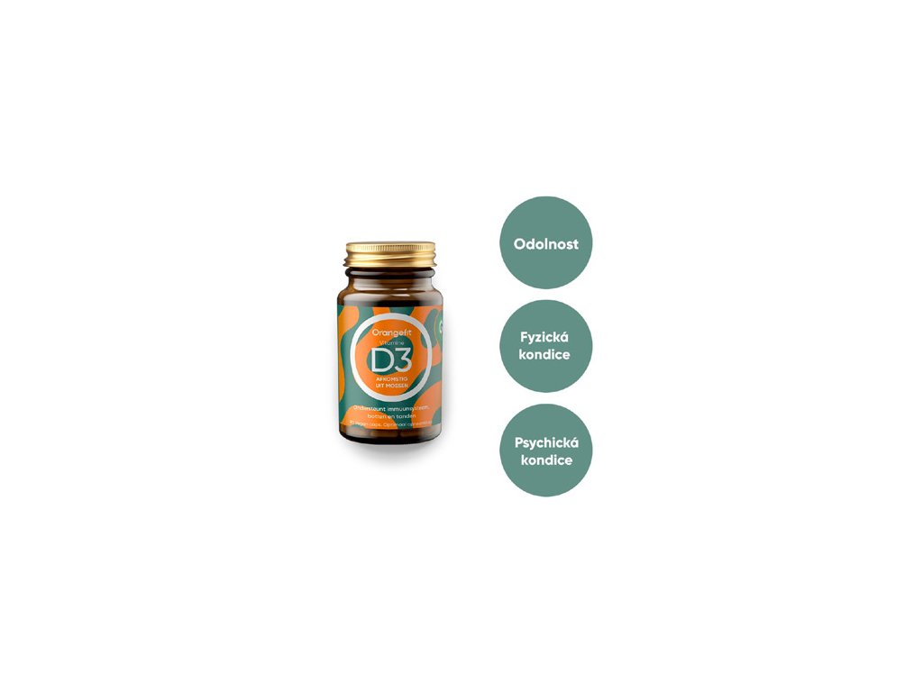 Orangefit Vitamín D3 má navíc obrovský benefit - je 100% rostlinný, získaný z mechu, takže je vhodný i pro vegany. Navíc je šetrný k zažívání. Doporučená denní dávka se pohybuje okolo 400-800iu, v jedné kapsli Vitamínu D3 Orangefit najdete 25 µg (1000iu) vitamínu, takže máte na den více než vystaráno.